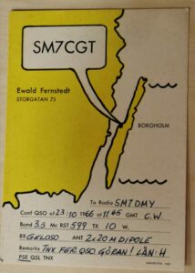 Veckans bild i Amatörradionyheterna i början av februari togs i själva verket för ganska många veckor sedan. Närmare bestämt någon gång 1968 då den här bilden togs av unge Evald Fernstedt, SM7CGT, i sitt shack i Borgholm. QSL kortet är det som fotografen fick efter sitt första QSO med Evald. Det var inget long distance DX precis. Kommunikationen gick mellan Storgatan och Västra Kyrkogatan i Borgholm…